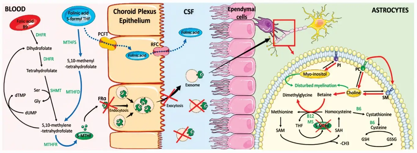 • Dysfunction of the folate receptor alpha (FRα) at the choroid plexus